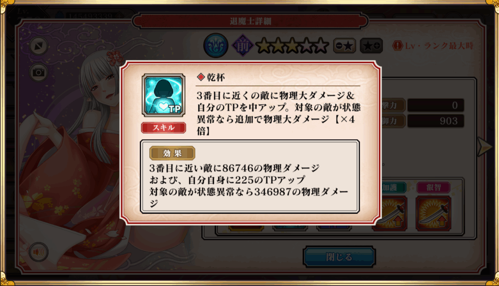・スキルの「TPアップ」や「物防ダウン」はバトルを優位に進められる。幻影訓練のアタッカーに向いている